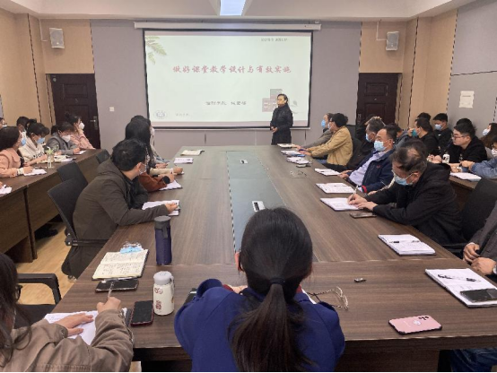 姚素梅教授首先从“ 根据您的教学经验,上好一节课,应设计好哪些课堂教学环节?”这样一个问题进行导入,接着她从四个方面阐述如何做好课堂教学设计与有效实施。一是课堂教学设计环节,姚教授分别对理论课程课堂教学设计和实践类课程课堂教学设计进行了讲解;二是课堂教学的有效实施,姚教授从有效导入新课、有效提问、有效课堂互动、教学方法有效运用、有效课堂联系、有效运用教学技能、有效课程思政、有效结课与布置作业等方面进行了详细的讲解;三是课堂教学能力提升,姚教授建议青年教师要认真备课、反复练习、熟练内容,多听课、多交流、多请教、勤思考、学会评课,找出问题及时修正,逐步提高教学水平;四是课堂教学方式创新,姚教授介绍了课堂教学改什么、怎么改、怎么做、改革目标等方面的内容。