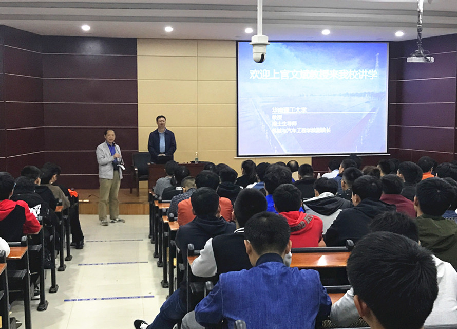 10月29日,中国汽车标准化委员会车辆动力学分委会委员、知名汽车专家、华南理工大学机械与汽车工程学院副院长、博士生导师上官文斌教授应邀在TYC234CC太阳成集团图书馆102学术报告厅做了题为《从“汽车动力总成转动惯量测试实验台开发” 谈大学基础知识学习》的学术报告。理工学院肖生发教授主持讲座,理工学院汽车教研室全体老师和汽车专业200余名学生聆听了报告。