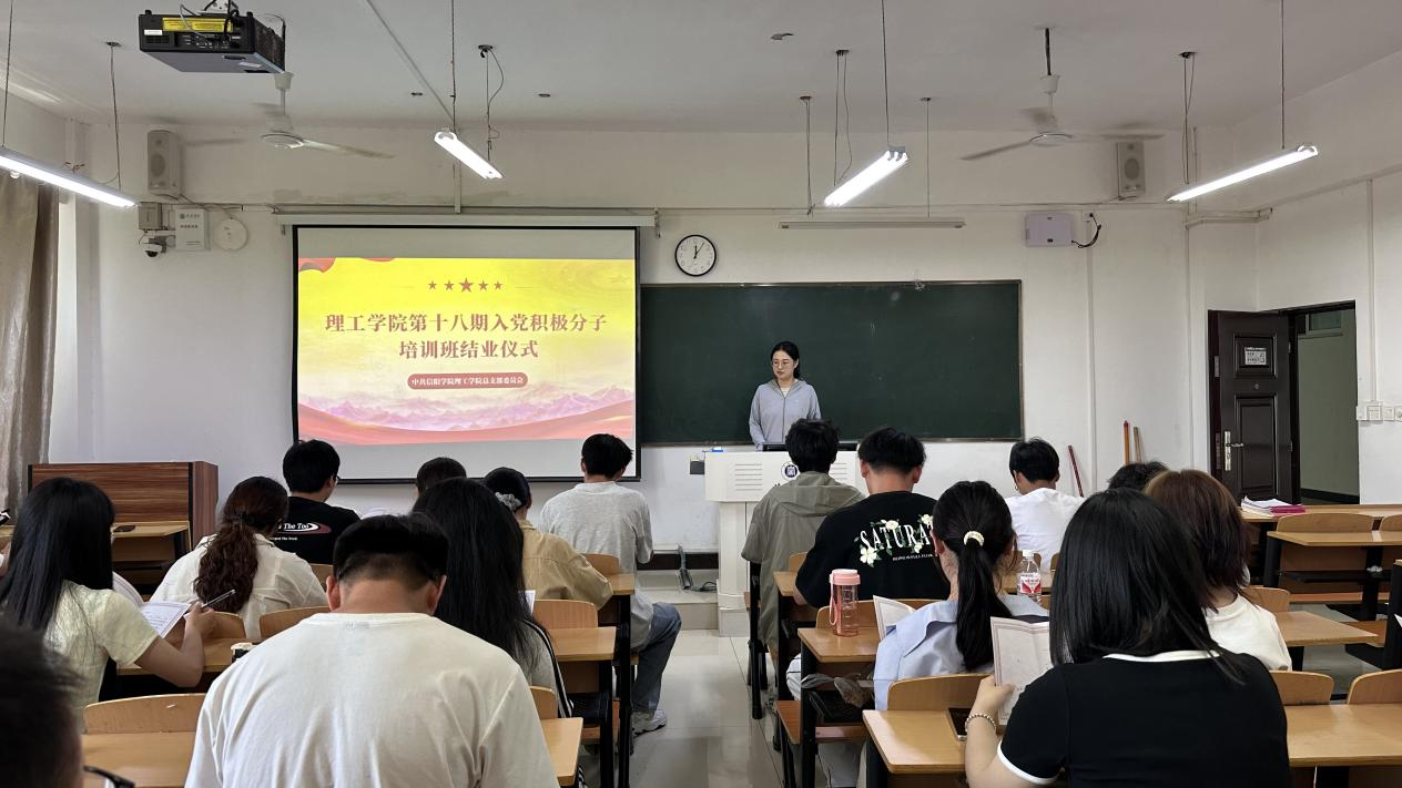 4月28日,理工学院第十八期入党积极分子培训班结业仪式在理工楼307举行,党总支组织员王雨茜和全体入党积极分子参加了此次结业仪式。