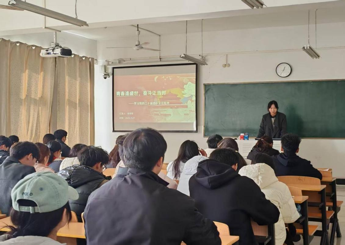 本次党课由学生第四党支部书记程雯雯主讲,围绕“青春逢盛世、奋斗正当时”为主题系统解读党的二十届四中全会精神。她结合全会召开的时代背景、“十五五”规划的战略定位,深入阐释了高水平科技自立自强、现代化产业体系建设与新安全格局等核心内容,帮助学员全面理解全会精神的理论内涵与实践要求。针对青年群体特点,程雯雯重点强调新时代青年在中国式现代化建设中的使命担当,鼓励学员在实践中勇当先锋,将青春活力转化为发展动能。学员们表示,本次党课内容系统、启发深刻,是一次思想上的淬炼与精神上的洗礼,进一步增强了理论素养与实践自觉。