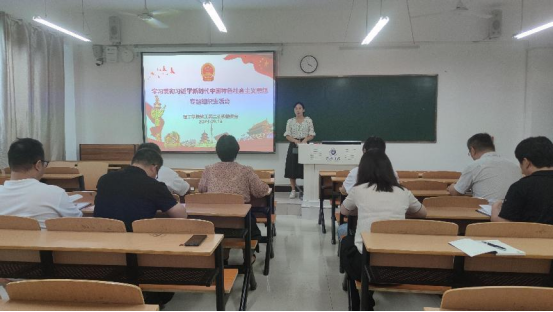 理工学院教工第二党支部于9月7日结合学习“三会一课”和主题党日,深入开展习近平新时代中国特色社会主义思想专题学习活动。教工第二党支部在支部书记高进勇的带领下,支部党员共同学习《习近平新时代中国特色社会主义思想学习刚要》第八卷——坚定不移全面从严治党。