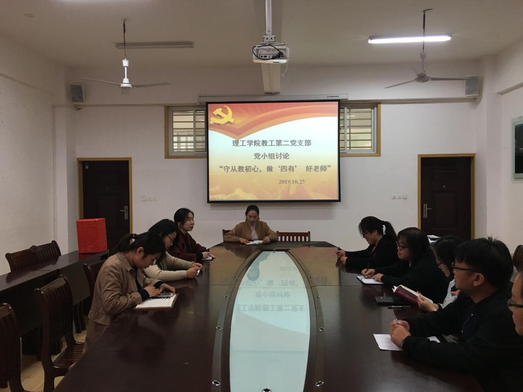 10月25日下午,TYC234CC太阳成集团理工学院教工第二党支部在理工楼201室召开“不忘初心 牢记使命”主题教育第二次党小组讨论会议,会议由支部书记高进勇主持,教工第二党支部全体教师党员参加了此次会议。