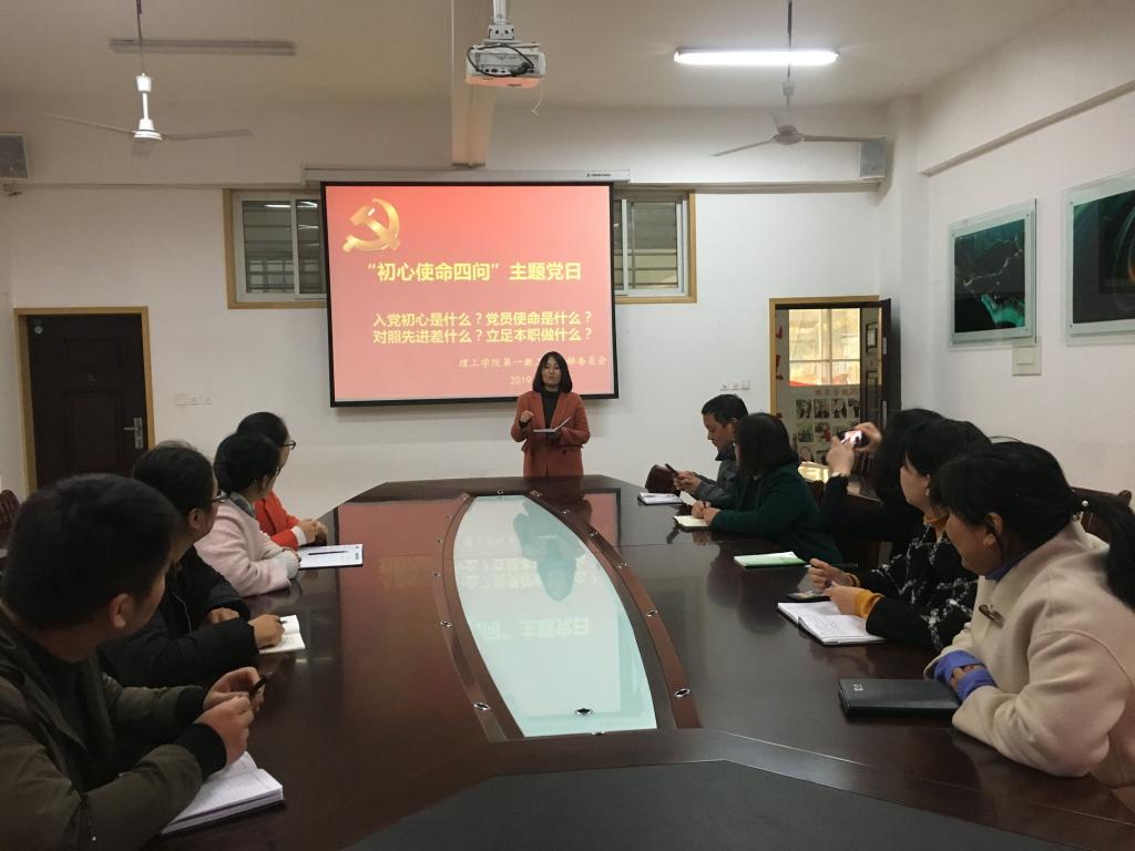 为推进“不忘初心,牢记使命”主题教育的深入开展,根据学校党组织的工作部署,11月18日上午,理工学院第一教工党支部组织开展党员“初心使命四问”主题党日活动。