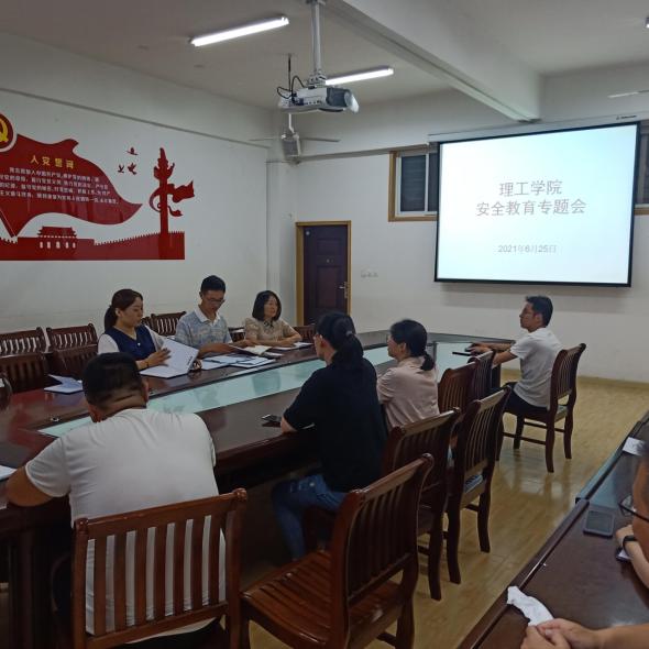 6月25日下午,理工学院在理工楼201会议室召开了安全教育专题会。理工学院党总支副书记张红梅、学工秘书杨晓杰、行政干事樊瑞、各教研室主任、各实验室负责老师和全体辅导员参加了会议。