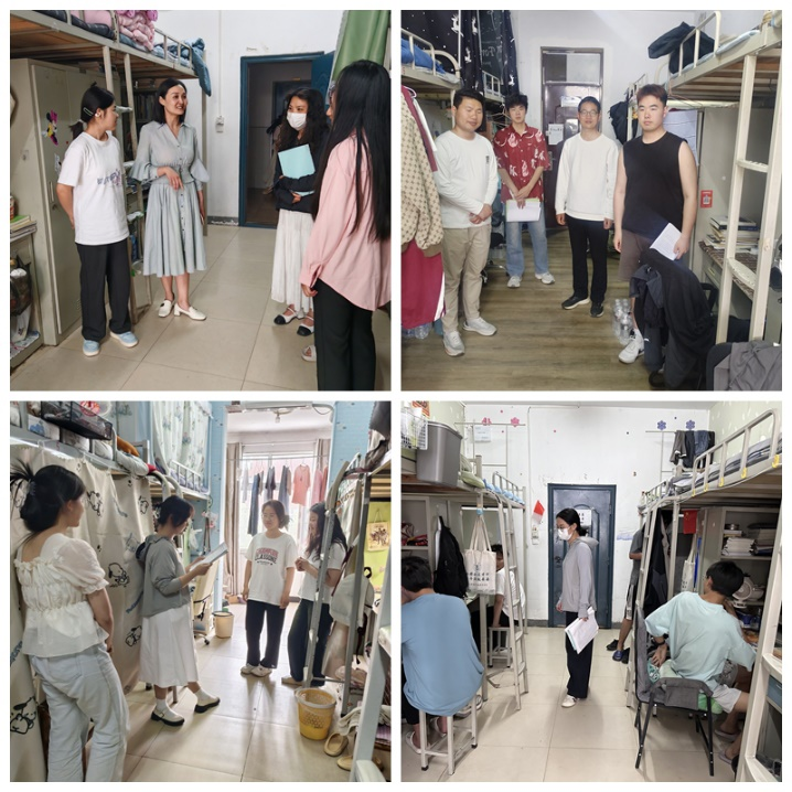 在五一劳动节来临之际,为切实保障假期校园安全稳定,深入了解学生生活需求,营造温馨和谐的节日氛围,4月29日,理工学院党总支书记赵佳、学工秘书杨晓杰带领全体辅导员深入学生宿舍开展节前走访宿舍活动。