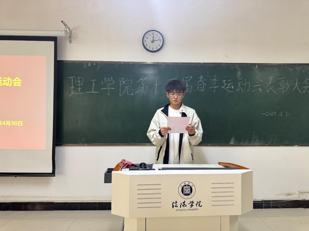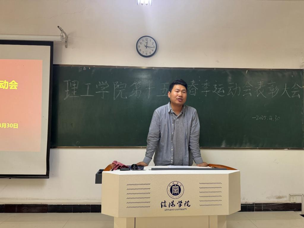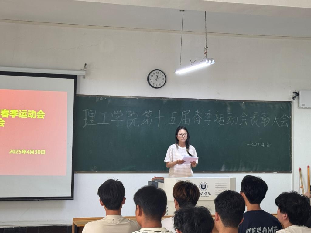4月30日,理工学院在理工楼302室成功举办第十五届运动会表彰大会,全体师生齐聚一堂,共同回顾赛场拼搏历程,见证荣耀时刻。学院团总支书记杨翔宇、学生会干部以及受表彰运动员参加会议。