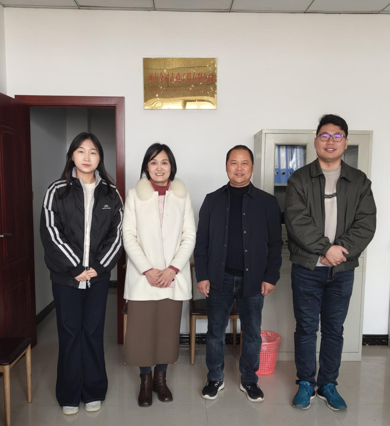 为深化校企合作,拓宽理工学院毕业生实习就业渠道,12月17日,理工学院党总支书记赵佳、团总支书记杨翔宇、辅导员程雯雯一行赴信阳金牛物流产业集聚区河南金树市政工程有限公司、河南金邦商贸有限公司开展“访企拓岗促就业”专项行动,旨在精准对接企业人才需求,促进理工学院毕业生高质量就业。