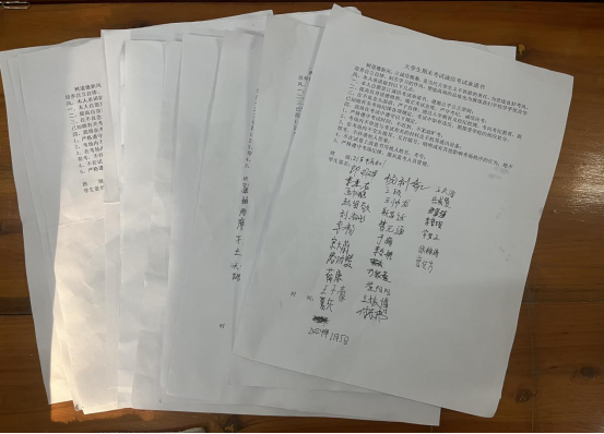 1月5日下午,学院组织学生代表在理工楼前进行诚信应考签名,同学们纷纷表示将坚守文明考风、良好的学风、文明的校风,会把时间和精力放在复习考试上,自觉抵制考试作弊行为,考出真实水平,考出真才实学,考出诚信风采。