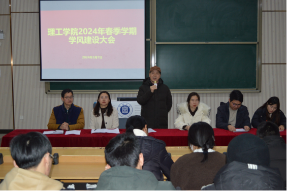 为进一步发扬理工学院优良学风,加强理工学院学风建设,提高学生学习效率。3月7日晚,理工学院在实训中心104举行了理工学院2024年春季学期学风建设大会。党总支书记张红梅、理工学院院长肖生发、教学副院长李晓严、学工秘书杨晓杰、团总支书记杨翔宇、全体辅导员出席会议。全体学生代表参加会议。本次会议由党总支书记张红梅主持。