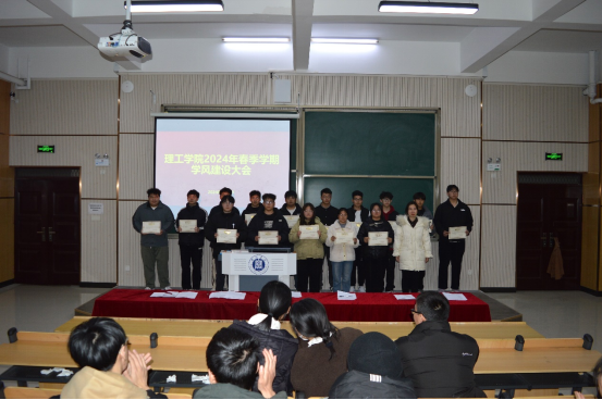 会议开始,学工秘书杨晓杰总结了2023年秋季学期学风建设活动所取得的成就。团总支书记杨翔宇宣读了《2023——2024学年学风建设先进班集体名单》,并由教学副院长李晓严为获奖先进班集体进行了颁奖。
