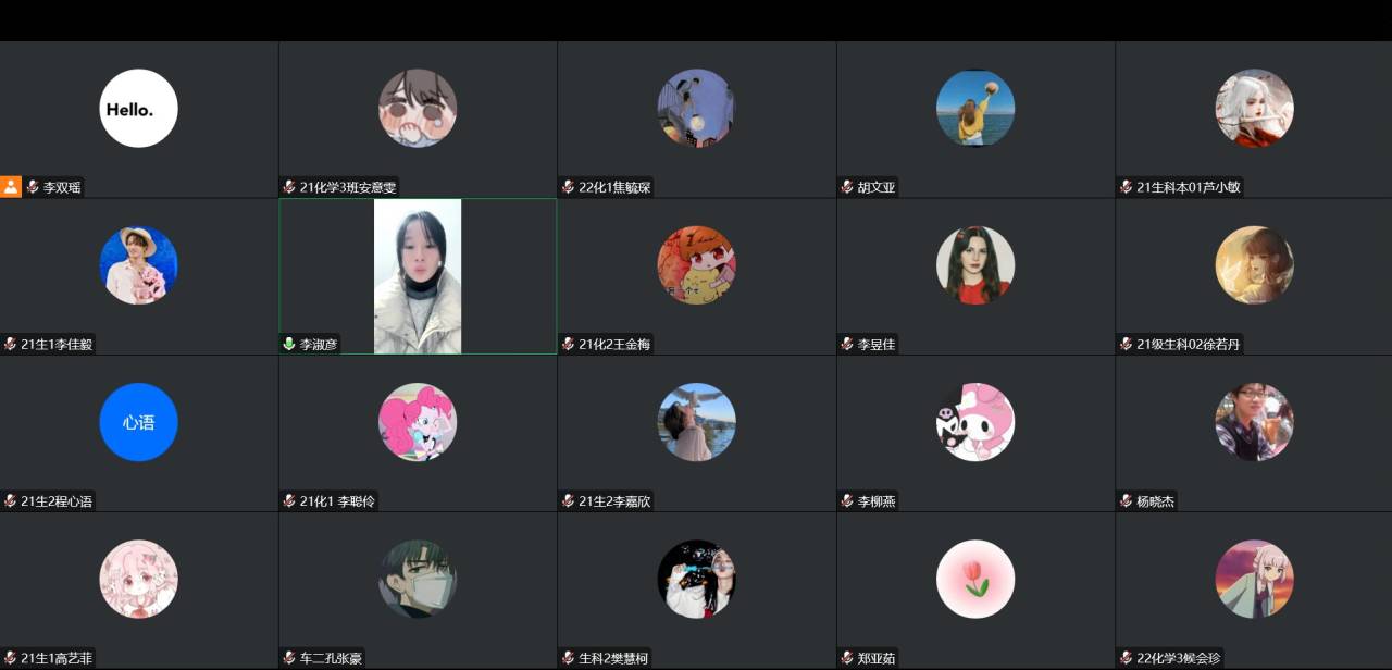 线上读书分享活动一共有13名同学参加,同学们通过讲述自己喜欢的书目,用读书笔记来记录阅读过程中的所想所思所悟。21化学本03班安意雯分享的书目是《追风筝的人》,阐述了“人生就是这样,不断的犯错,然后弥补,在通往好人的路上,阿米尔一直在努力。阿米尔追着风筝穿越了城市的大街小巷,在追风筝的过程中得到了成长。”21化学本01班李聪伶分享的书目是《挪威的森林》,向大家讲述了“我们在长大,我们在不断地在明白这个世界,在知晓这个世界,自己也在不断变化着,来适应这个世界,融入这个世界。”21生科本01班高艺菲通过分享《天才在左,疯子在右》这本书,讲述了“我们要试着去理解别人的世界,容纳别人的观点,多倾听他人的想法和意见”。此外,其他同学依次对自己喜欢的书目进行介绍,并分享自己的感悟。