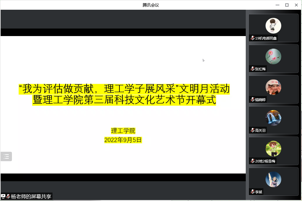 为营造迎评促建良好氛围,扎实推进学校精神文明建设,理工学院于9月5日在线上举行了文明月活动启动仪式。参加本次会议的有理工学院党总支副书记张红梅、学工秘书杨晓杰、全体辅导员,以及各班班长、团支书、宿舍长代表。